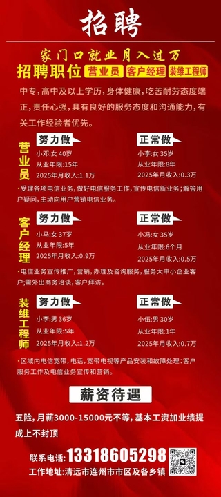 中国电信合作伙伴诚聘销售经理、智慧家庭工程师