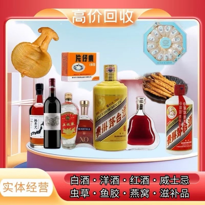 高价回收:黄金 铂金玫 瑰金,各类新老白酒 洋酒 红酒 威士忌 ;