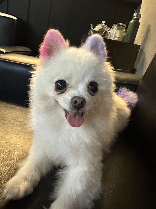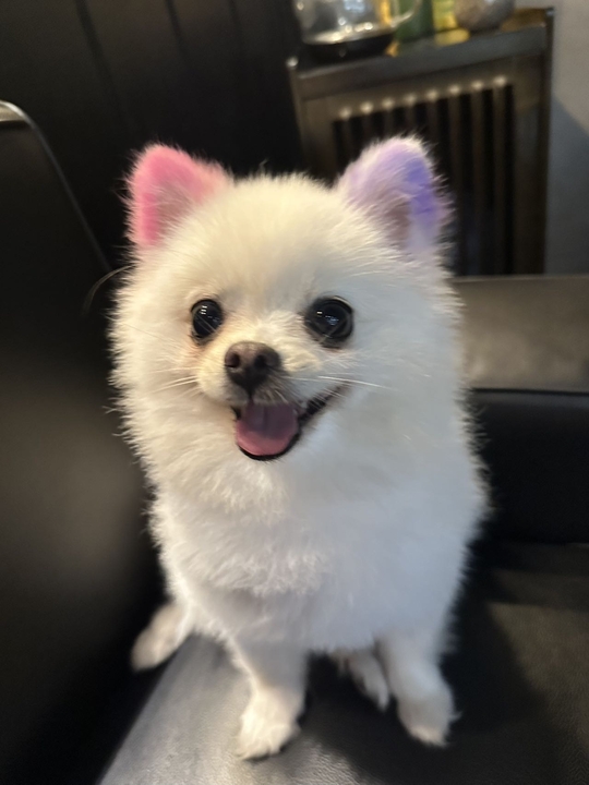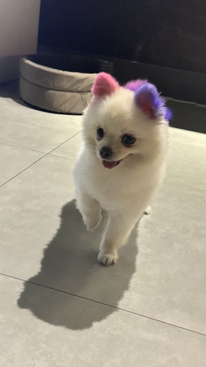 1.10九点整在东门北路与北山路交界处走失一条博美 耳朵粉色➕紫色尾巴也是紫色跟粉色。