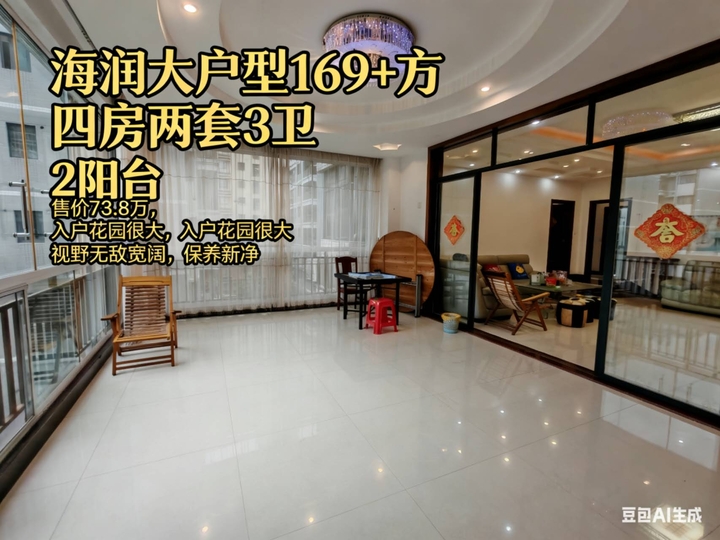 4. 海润大户型 169+方 四房两套3卫 2阳台 售价73.8万 入户花园大 视野宽阔 保养新净