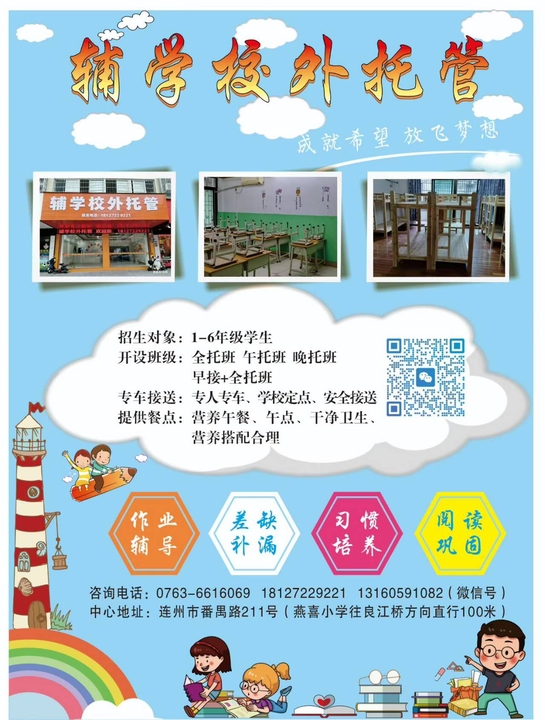 清远市连州市连州镇番禺路221号辅学校外托管