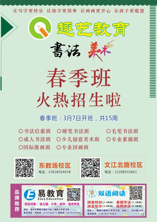 连州孩子想学写字画画的看过来,趣艺教育办学13年,8-12人小班制教学。