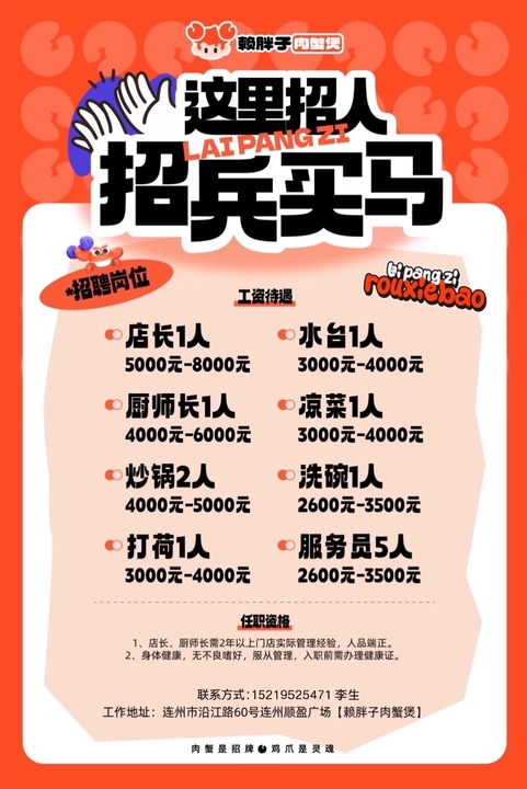 赖胖子肉蟹煲厨房+服务员
