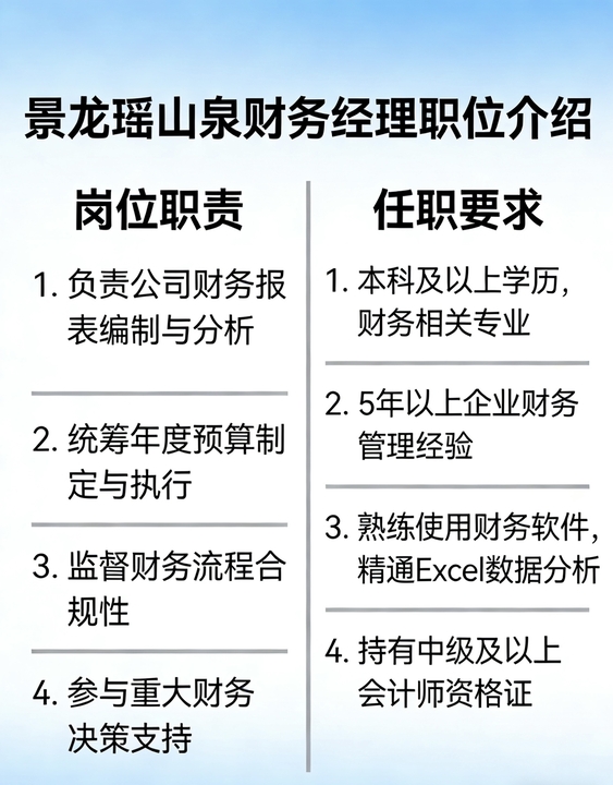 景龙瑶山泉 财务经理